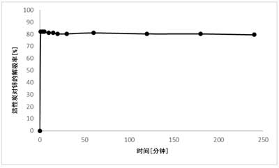 吸附后,用过的活性炭可以被处理掉或再生。在这两种情况下,都会产生二次污染。金属负载的二手废炭也是属于危废的。在再生中,金属以溶液形式被回收,并且再生溶液会引起二次污染。因此,所使用的再生溶液起着重要的作用,并且优选使用无害的再生溶液。通常使用的再生溶液是盐酸,H 2 SO 4,1M氯化钾,0.01M的NaNO 3和NaCl。活性炭的可再生性对于提高成本效益至关重要。在这项研究中,使用0.1 M HCl进行Zn解吸,解吸实验的结果如图4所示。用过的活性炭与解吸溶液接触后立即发生解吸。解吸率为80%,与时间无关。因此,可以使用无害化学物质快速再生活性炭。