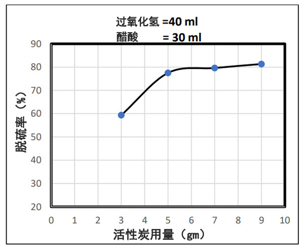 图1:所用样品中脱硫百分比与活性炭含量之间的关系。