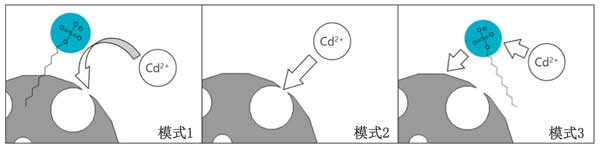 图2:镉离子被十二烷基硫酸钠和活性炭吸引/吸收的反应机理。