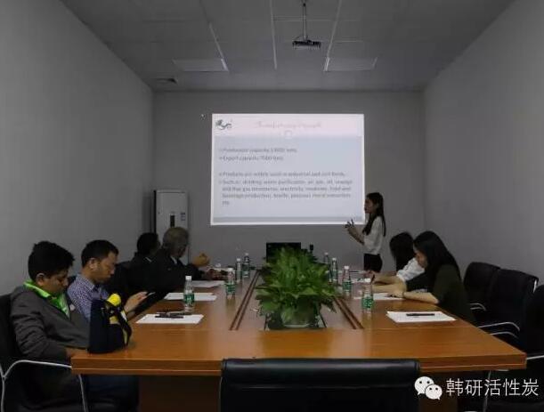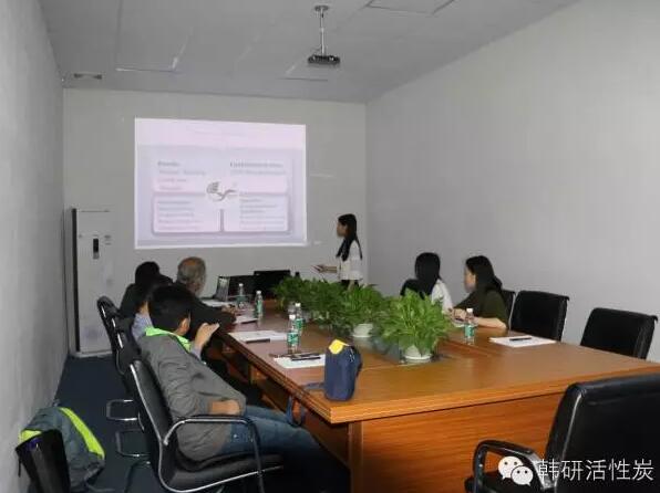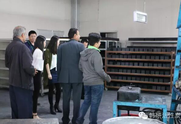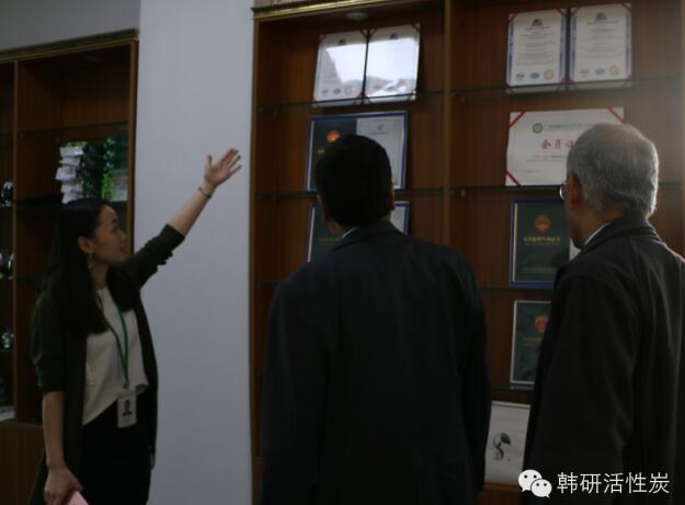 我司外贸总监Jane 带领来访的客户们参观了我司的证书展示区(各种认证及专利)、产品展示区、研发实验室、蜂窝活性炭生产车间、椰壳活性炭生产车间等等,让他们更加真真切切地感受到韩研强大的技术研发及生产能力。