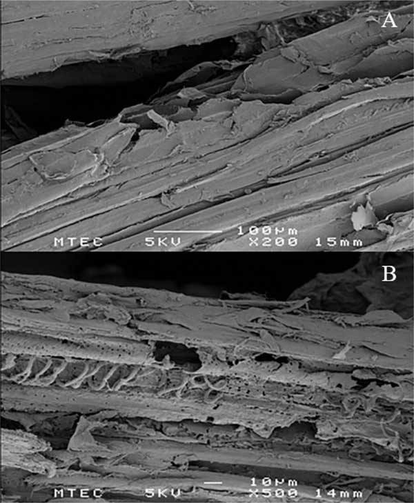 彩运cy888 如图3所示,将通过分离获得的固相微结构通过SEM与天然RH进行了比较。活性炭原材料提供了正常且完整的表面,表明植物材料的高度有序的完整结构(图3A)。分离的固体残余物的生物质的表面结构显示出表面和内部结构的破坏,并具有空腔和裂纹。该观察结果表明半纤维素的去除和表面木质素的改变。对于BET表面积测量,分析了原始和预处理的生物量样品。