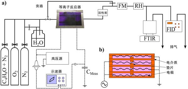 彩运cy888 图1:(a)实验装置(b)等离子体反应器的示意图。