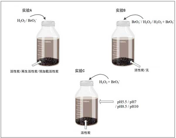 在饮用水处理过程中,使用臭氧和过氧化氢的高级氧化工艺可能会产生副产品、残留的过氧化氢和溴酸盐。由于这些副产物可能会对后续含水层系统的生态系统造成不良影响,因此在流入含水层系统之前需要将其处理至低浓度。本次主要是评估水中高级氧化工艺中残留的过氧化氢和溴酸盐副产物是否能用活性炭去除,并研究其背后的机制。