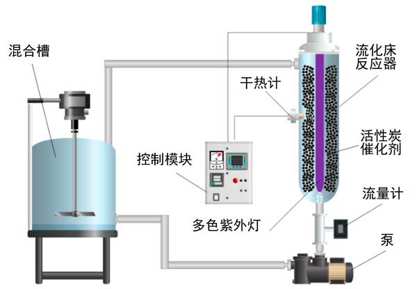 图1:中试规模的流化床光反应器示意图,用于从工业废水中去除苯胺和苯并噻唑的光催化和吸附实验。