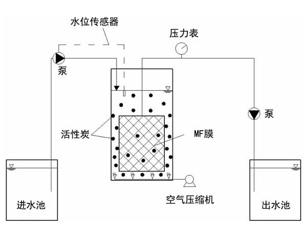 图1:实验室规模的浸没式膜过滤系统示意图。