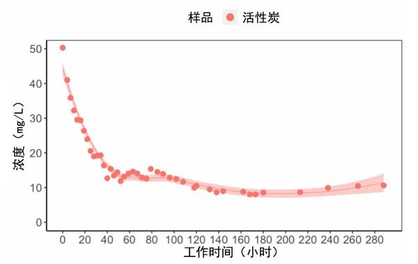 图2:运行期间主体相中动力活性炭浓度的变化。