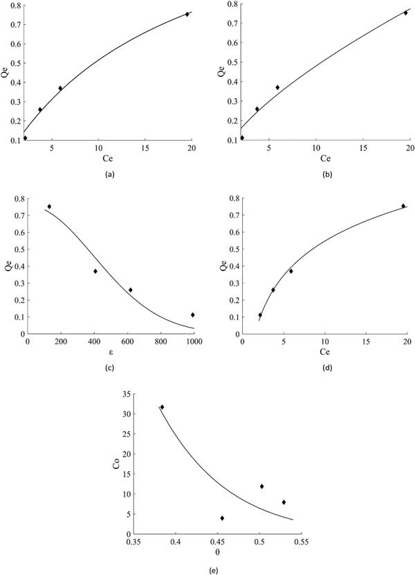 氯丙醇化合物的吸附是由于活性炭表面的羧基与3-MCPD的氯化物位点发生酯化,不是羟基位点或酯位点。因此,等温线模型是用3-MCPD溶液作为被吸附物溶液的吸附来测量的。各等温线模型的线性回归图见图3,从结果来看Langmuir、Freundlich、Dubinin-Raduskevich和Temkin等温线模型具有较高的R2值,Temkin模型较高,因此是适合3-MCPD吸附的模型。