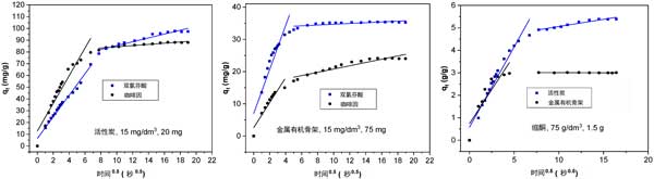 图2:在活性炭和有机金属骨架上吸附有机分子的粒子内扩散模型。