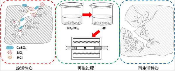 活性炭在烧结烟气处理后的再生,采用了Na2CO3溶液、HF溶液和CO2的新型连续处理方法可以有效地从烧结烟气净化过程中再生废活性炭。无机化合物如CaSO4和SiO2以及KCl的沉积导致活性炭失活,Na2CO3溶液可以将CaSO4转化为CaCO3并去除水溶性化合物,如KCl。硫转化率首先显着增加,然后随着Na2CO3浓度的增加变化减慢。当Na2CO3浓度为0.5mol/L时,硫转化率自由基高达94.6%。另外在各种溶剂浓度和温度都达到较好的水平,总体再生效率可达111%