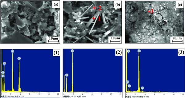 彩运cy888 图2:活性炭和危废活性炭的SEM图像和EDS结果。(a)危废活性炭图像;(b,c)活性炭图像(1)CaSO4;(2)的SiO2;(3)KCl。