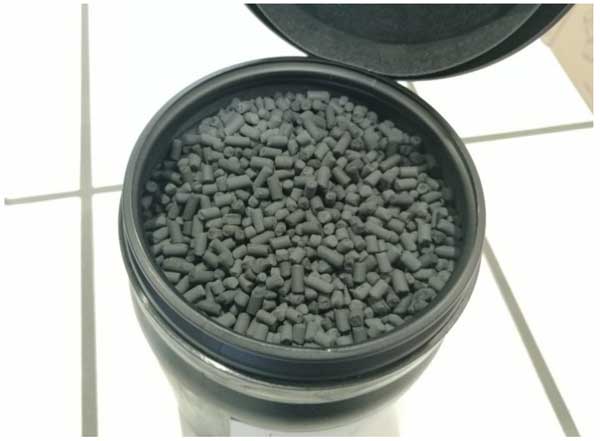 彩运cy888 根据直接使用瓶装真实气体所获得的结果,包括列出的催化剂毒物,这会导致催化剂快速降解,因此在第一个反应器的上游安装了活性炭过滤器。为此,将金属氧化物浸渍的活性炭颗粒添加到气体混合站。这些颗粒专门开发用于从缺氧气流(例如CO2、N2、CO和H2)中去除硫化氢、有机硫醇、二氧化硫、硫化羰和氮氧化物。它们的铜含量为7%(以CuO计),直径为3mm,长度为7mm(图3)。将总共约300毫升的这些颗粒活性炭加入气体混合站。