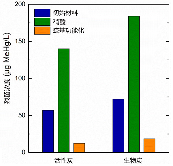 汞被对生物体具有高毒性,用于处理汞或甲基汞污染的水的方法不多,比如有吸附、混凝、过滤和生物过程。然而,到目前为止,只有吸附法在处理用于饮用的水时是比较可靠的。在接触中与水相有关的主要形式是甲基汞,本次我们使用两种碳基吸附材料,即活性炭和用来对照的生物炭,通过在其表面引入硫醇活性基团进行改性,以ppb浓度水平从类天然水中去除甲基汞。