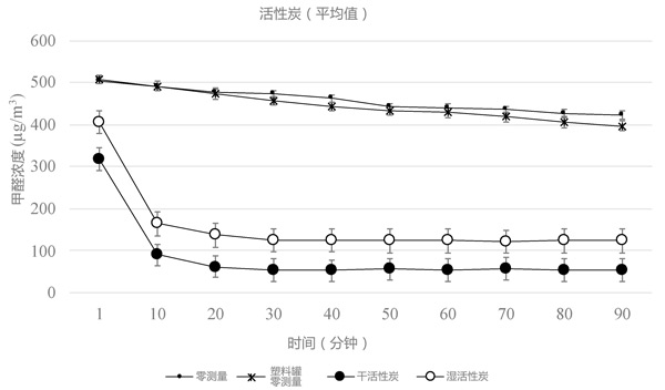 图2:测试活性炭样品时测得的甲醛浓度。