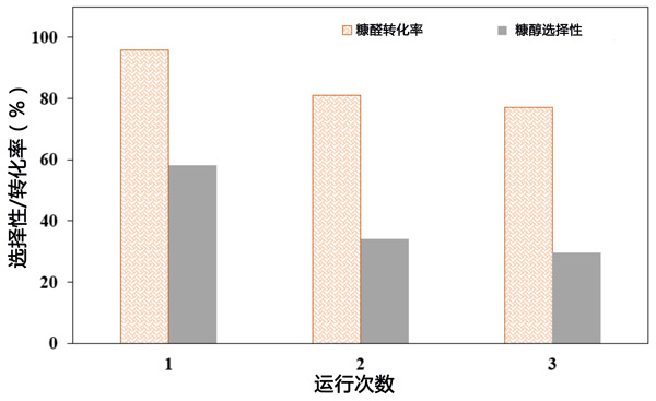 图3:使用载铁铂活性炭催化剂将糠醛转化为糠醇的催化剂可回收性。
