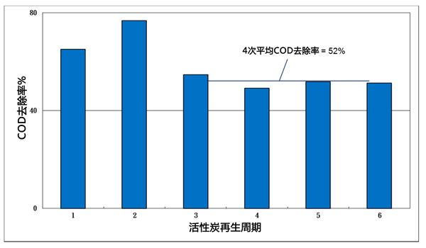 图2:COD去除百分比与活性炭再生次数的关系图。