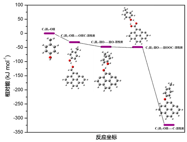 图2:甲酚吸附到原始和功能化活性炭上的相对能量图。