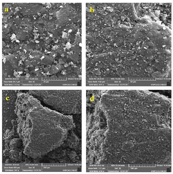 彩运cy888 图2:(a,b)纯活性炭和(c,d)改性活性炭的SEM显微照片。