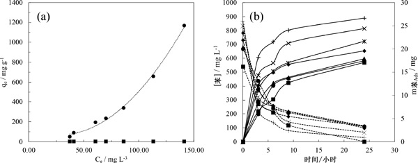 彩运cy888 图3:苯在水和甲醇中的吸附等温线(a)和苯(b)在0.030L甲醇中不同量的活性炭中的吸附等温线。左轴甲醇上的苯浓度和右轴活性炭中剩余的苯质量。
