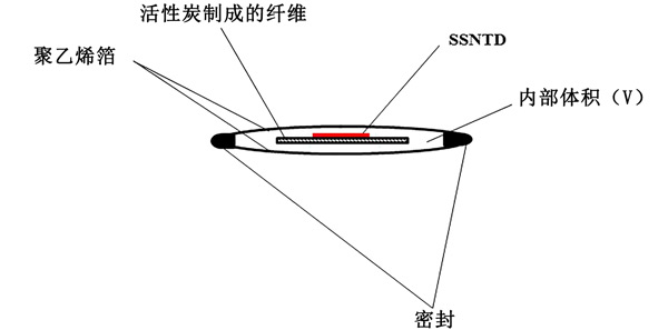 带温度补偿的活性炭探测器模块设计如图1所示。内部传感器使用活性炭吸附器和固体核径迹探测器(SSNTD)。在本实验中,使用了三种活性炭制成的纤维。活性炭用作氡收集器/散热器,而SSNTD则检测辐射量。补偿模块的壁由低密度聚乙烯或高密度聚乙烯箔制成。根据造型选择箔的厚度和表面积,以达到合适的温度补偿。。当探测器在探测器模块外时,校准系数为CF0。然而,当探测器放置在其校准因子内时,平衡时将为CF =CF0.ρ,其中ρ是“穿透率”,即模块体积内空气中的平衡时氡浓度与浓度的比值在它周围的空气中。CF0与吸附容量k成正比并且遵循与k相同的温度趋势,而CF与kρ成正比。正如在其他地方所指出的,穿透体积中壁的部分ρ随着温度的升高而增加,因此温度的趋势与k的趋势相反。选择气体扩散通过的壁材、厚度、壁表面积和“补偿模块”的体积,以使kρ的温度变化在应用的温度区间内尽可能小。