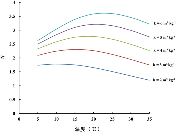 彩运cy888 查看活性炭的检测器的结果(图2)可以看出,相同温度下的CF0在活性炭之间存在差异。这意味着不同活性炭的吸附能力存在一些差异。在所有模块设计中,假设21℃下的吸附容量值为4m3/kg-1。然而,由于我们的实验结果表明不同活性炭材料的k可能存在差异。不同k值的结果如图3所示。可以看出,对于区间2-6m3/kg-1内的所有k值,η的变化(例如最大/最小比率)与温度的变化远小于未包装传感器观察到的230-305%的变化。