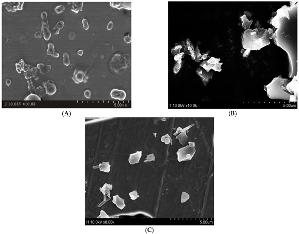 彩运cy888 图2:扫描电子显微镜图像:(A)降解细菌;(B)活性炭;(C)活性炭载菌。
