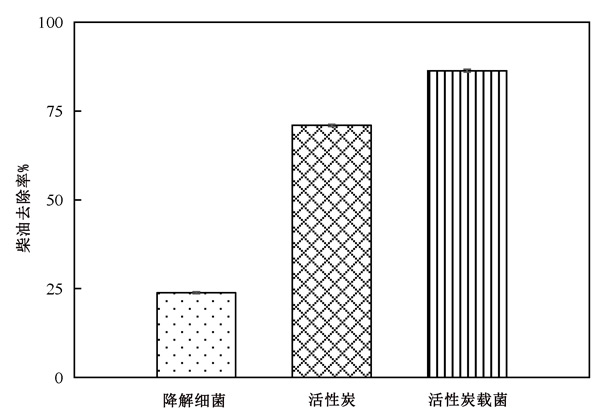 彩运cy888 图3:降解菌、活性炭和活性炭载菌的柴油去除率比较。