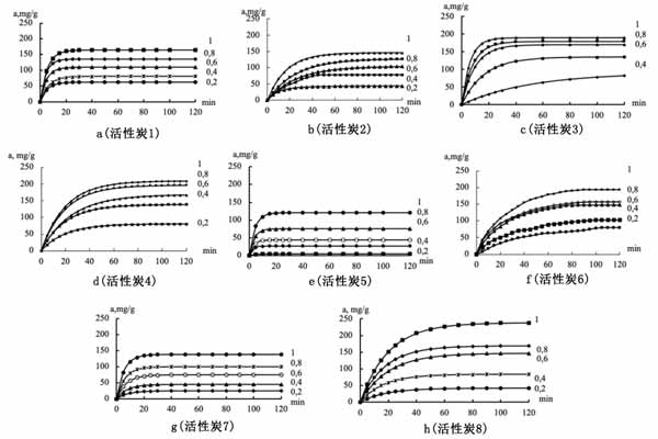 彩运cy888 图1:使用过的活性炭样品在20℃时对来自VMA的正丁醇蒸气的吸附动力学。