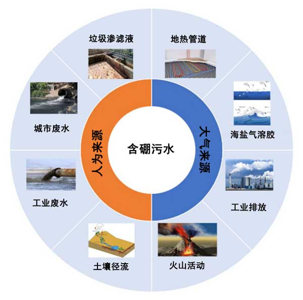 彩运cy888 硼通过矿物提取、煤炭燃烧、含硼砂产生的清洁剂的废水排放、硼肥等应用以及硼化物处理的木材的副燃烧进入水环境(图1)。由于人类活动的影响,已经观察到地下水和地表水中的硼浓度增加。硼在水生环境中的存在会对环境造成很大的影响。但从工业设施对硼的需求增加,水资源中硼的含量增加,水质标准变得更加严格。所以需要去除水中的硼来修复环境。脱硼方法包括膜分离、活性炭吸附、(电)凝聚和沉淀、萃取以及这些方法的组合。