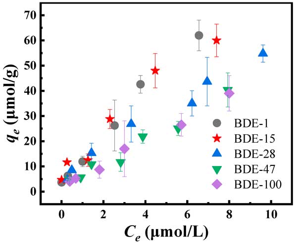 图2:活性炭对不同浓度PBDEs的吸附。