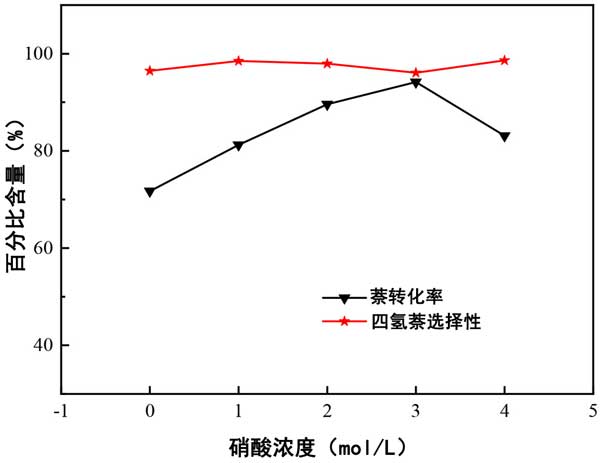 彩运cy888 图2:改性剂浓度对萘转化率和四氢化萘选择性的影响。