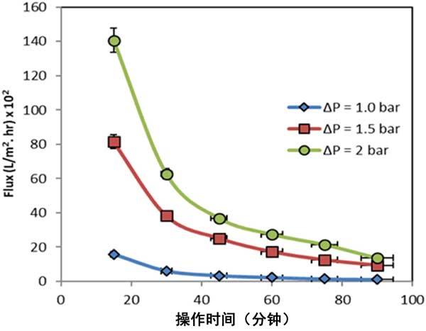 彩运cy888 图3:在不同的操作时间和压力下渗透通量。