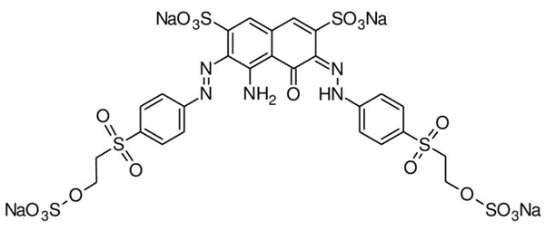 图1:活性炭黑5(C26H21N5Na4O19S6)的结构式。