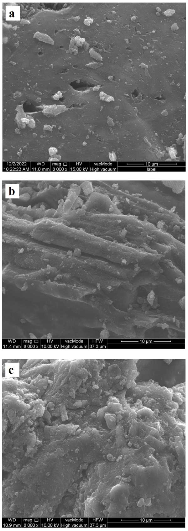 彩运cy888 在本研究中,通过聚丙烯酸和聚乙烯亚胺溶液和一些生物质热化学处理获得的活性炭被用作水悬浮液的成分。测定了在不存在和存在单一和二元聚合物吸附物的情况下溶液中碳质材料聚集体的zeta电位和尺寸。检查了单组分和双组分系统中的聚合物对活性炭悬浮液稳定性的影响。通过应用SEM技术测定不含和吸附聚丙烯酸或聚乙烯亚胺的活性炭的表面形态。两种活性炭的SEM图像如图1所示,而图2显示了聚合物存在下活性炭样品的形态。