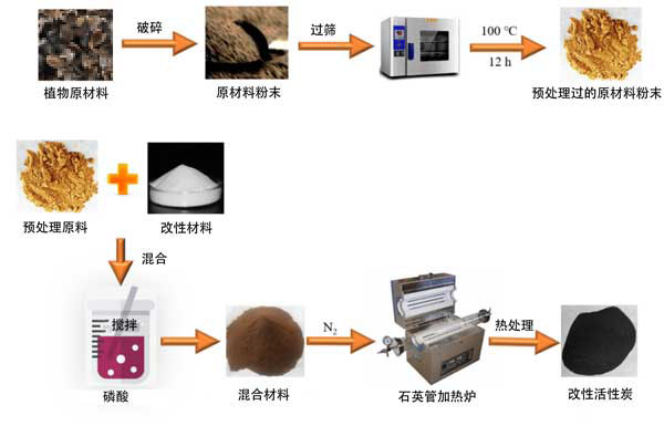 稀土元素具有独特的物理和化学特性,它们广泛应用于电化学传感器、超级电容器、生物医学纳米复合材料、发光材料、超导材料和永磁材料等。镧(La)是一种重要的稀土元素,在战略产业中占有举足轻重的地位。它的主要应用包括超导体、陶瓷、电化学、催化剂、磁性、发光和添加剂材料。从冶金溶液或废水中回收La3+具有重要的意义。然而La3+的回收率通常小于1%,且回收方法不环保或不方便用户。因此,发明了一种改性活性炭吸附剂。