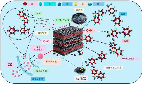 图5:示意图表示在吸附过程中SCAC和CR之间的关键相互作用。