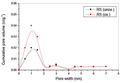 图1:未氧化和氧化的活性炭的DFT孔径分布。