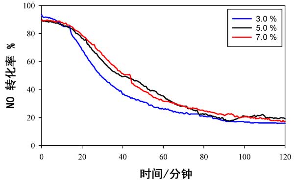 图2:使用乙烯还原剂的活性炭载锰氧化物的催化性能。