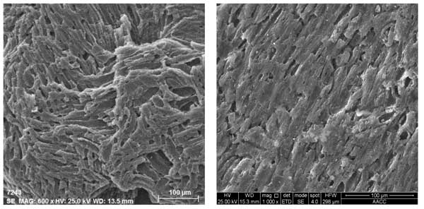 图4:活性炭和新鲜的活性炭载铁锰氧化物的SEM图像。