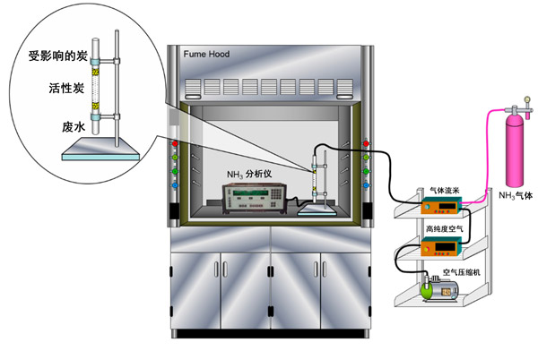 图1:用于动态连续氨气流量吸附实验的实验装置。