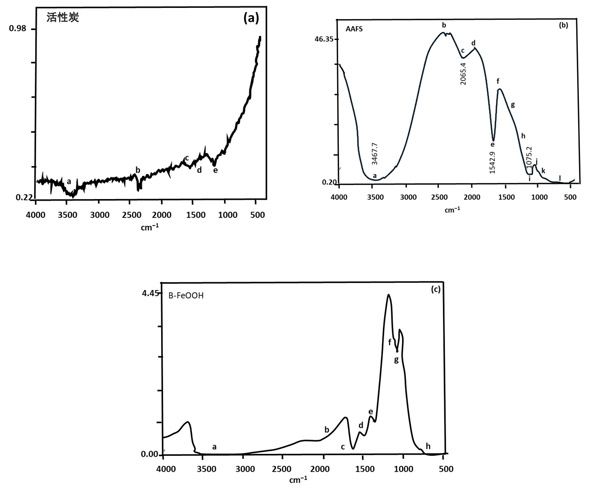 图1:活性炭,AAFS和B-FeOOH的FTIR光谱。