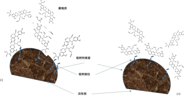 废水中不同类型的腐殖质会改变化学和物理特性,因此,它们与不同类型的吸附剂相反地相互作用。关于吸附剂的孔隙率,活性炭主要是微孔的,具有非常大的表面积。β-FeOOH的情况尚不清楚,因为不同的方法给出的结果不同。但是,铁化合物上有可能存在微孔。与活性炭相比,可用于AAFS和β-FeOOH的吸附面积小。但是,被吸附物的大小可能使其无法穿透微孔,因此限制了对活性炭的吸附,但是活性炭的孔隙率是可控的所以能解决这方面问题。
