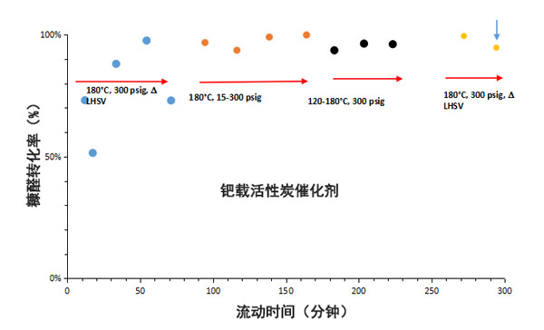 图3:在活性炭催化剂上使用钯进行糠醛加氢。