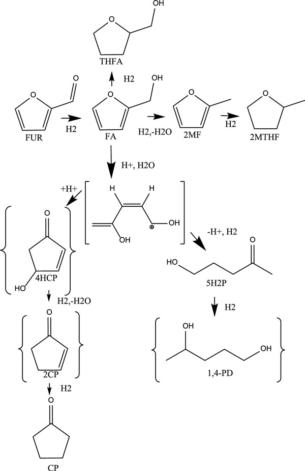 彩运cy888 在下一组实验中,确定了液体停留时间对糠醛加氢超过0.8%活性炭催化剂的影响(H 2气流保持恒定在100 mL/min)。糠醛转化率随着液时空速的增加或停留时间的缩短而下降,碳封闭率在74%至100%之间。温度,压力和液体停留时间效应研究的结果表明,活性炭催化剂主要通过糠醛促进了糠醛中糠醇和2-甲基呋喃的形成,并通过推测性反应途径促进了环戊酮和5-羟基-2-戊酮的少量形成,需要对酮进行酸催化)形成(图3)。