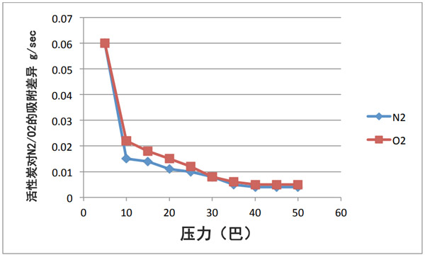 图3:活性炭低温吸附N2和O2的模拟测试。