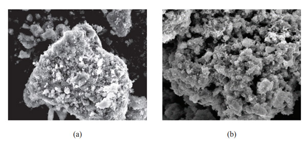 图3:催化剂的SEM表征(a)商业催化剂,(b)Cu/ZnO/活性炭催化剂。