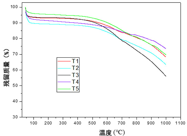 热重分析如图3所示。可以观察到处理过的和未处理过的活性炭的降解情况。这种分析可以评估高温下的热稳定性以及某些结构随温度的退化。