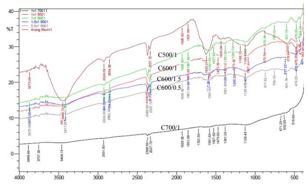 我们对吸附后的溶液进行FTIR分析以鉴定活性炭表面上的官能团。在图1中,我们可以看到椰壳活性炭和木质活性炭彩运cy888所具有的吸收带。在温度升高时,这可以看作是吸收波数的偏移。活化剂似乎也引起吸收波数的移动。可以说,活化方法不会出现新的官能团。所有的峰都来自活性炭的初始原料,但对于活化的峰而言强度较低。