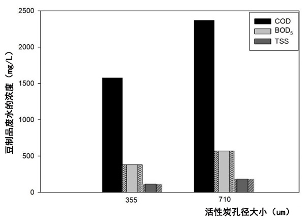 活性炭的粒径对豆制品废水中COD,BOD和TSS去除的影响