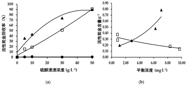 图2:浸有硫代乙醇酸的活性炭吸附金(a)金的回收曲线(b)等温线。