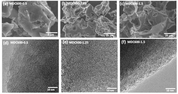 图1:不同孔径活性炭的SEM图像。